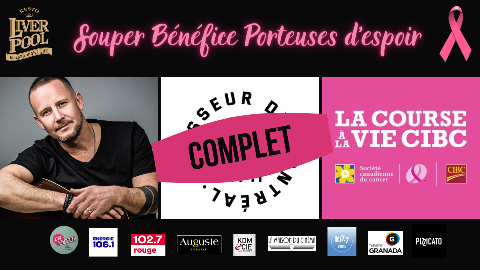 Pour une 8ième année, Annie Faucher et Charles Gauthier, propriétaires du Liverpool, vous invite à un souper bénéfice visant à supporter la recherche et les personnes atteintes du cancer du sein. Un 5 à 9 animé que vous ne voulez pas manquer.